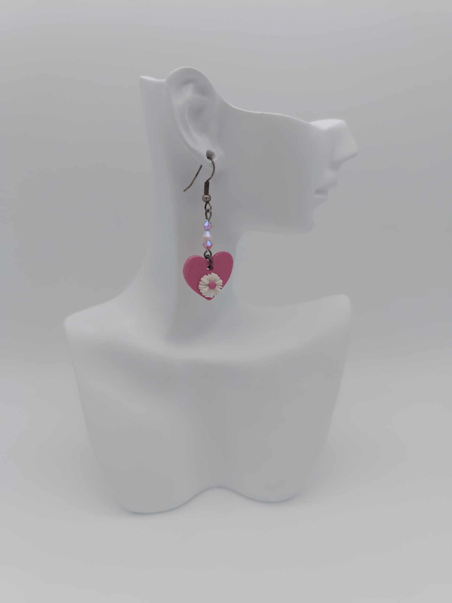 Boucles d'oreilles "Coeurs" en porcelaine froide avec perles Swarovski. Fermoirs en laiton.